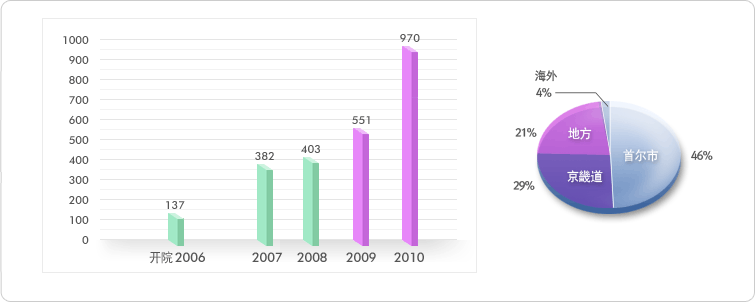 欣喜医院疝气科室由2001年韩国首创人工网膜疝气科室的姜允值院长为中心的6名外科医生组成,把3000多例剖腹疝补片无张力修补术的临床经验为基础,并且施行将它使发展完善的疝环充填式无张力修补术(Gilbert,mesh plug & Patch简称为mesh plug)。采用局部麻醉进行手术,手术隔天就可以出院了。术后疼痛及复发很少。诸多患者知道此事后在全韩国很多疝气患者来到欣喜医院疝气专科接受手术治疗。