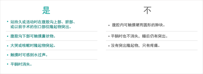 还有一种切口疝,剖腹手术时腹肌被切断,术后重新缝合这些肌肉。腹部手术切口愈合后,如果腹壁局部组织出现缺损,腹内器官组织可突出到正常腹膜壁层平面以外,称为切口疝。肌肉太薄弱或伤口化脓时可能形成。