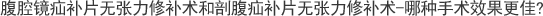 疝补片无张力修补术又分为剖腹疝补片无张力修补术和腹腔镜疝补片无张力修补术。