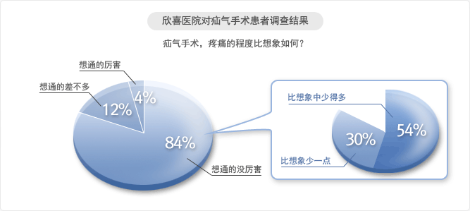 把局部麻醉药注射时会感到打肌注程度的疼痛,术后可自行走回到病房的程度几乎没有疼痛.。虽手术当天晚上稍有疼痛,但打止痛剂的情况是少见的。