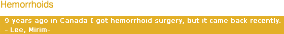 After I learned a sitz(hip) bath I was discharged. That evening for the first time I relieved myself, a little earlier than normal time – I heard other people do it on the third day, but I felt amazingly no pain. The most worrisome problem of my life has been resolved. After vowel movement, I took a hip bath and began to live a normal life. I avoid salty and spicy food and try to eat fibroid food.